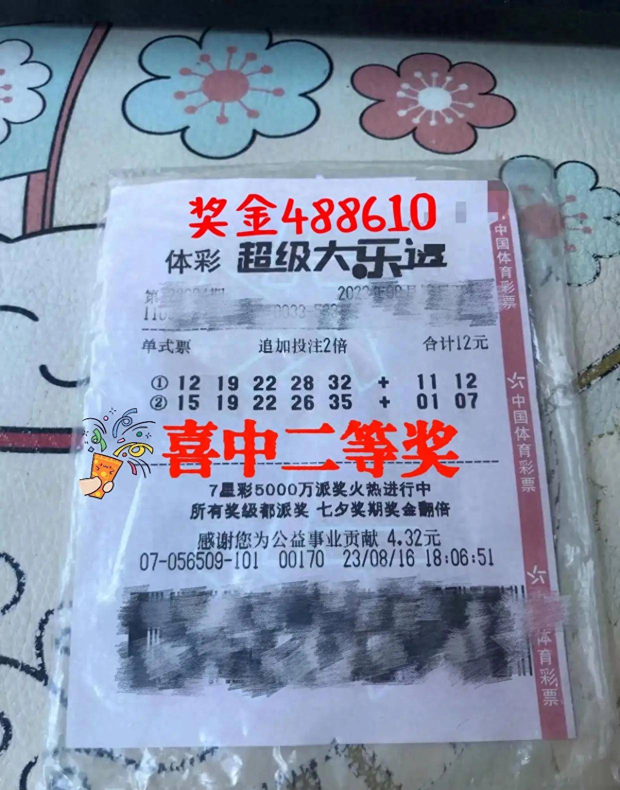 彩票,彩票平台,彩票网站,彩票APP下载,六合彩,快三来自浙江金华的幸运彩民凭借一张仅12元的大乐透追加单式票,成功斩获了丰厚的二等奖奖项,总奖金高达48万余元,税后奖金更是达到39万多元。这个惊人的中奖消息实在让人羡慕不已!尽管彩民圈中的大奖层出不穷,能够将中奖彩票、兑奖支票以及入账短信一并晒出来的,却并不多见。幸运的这位彩民,不仅分享了自己的中奖经历,还公开了完整的兑奖过程,让大家也有机会一同见证这份幸运。